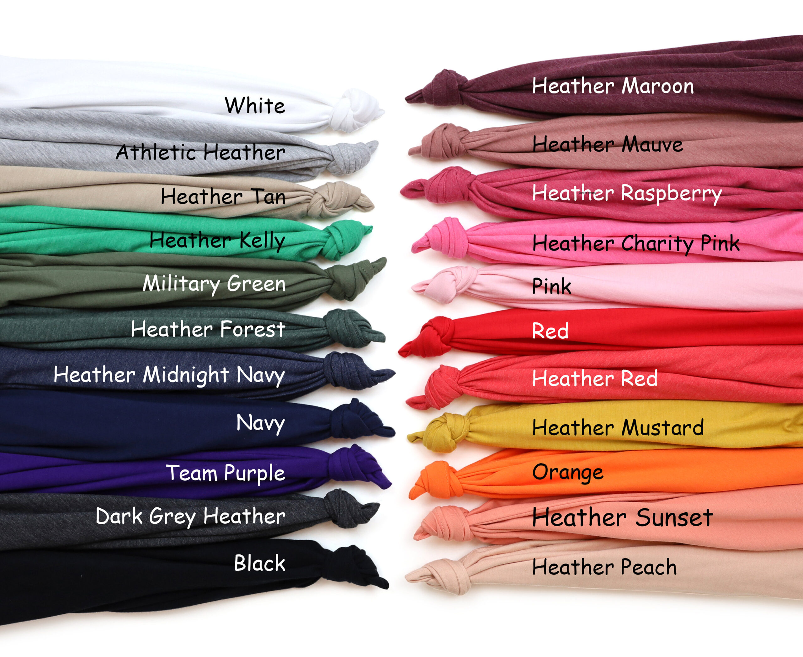 | Color | White, Athletic Heather, Heather Tan, Heather Kelly, Military Green, Heather Forest, Heather M.Navy, Navy, Team Purple, Heather Dark Grey, Black, Heather Maroon, Heather Mauve, Heather Raspberry, Heather Chrity Pink, Pink, Red, Heather Red, Heather Mustard, Orange, Heather Sunset, Heather Peach |